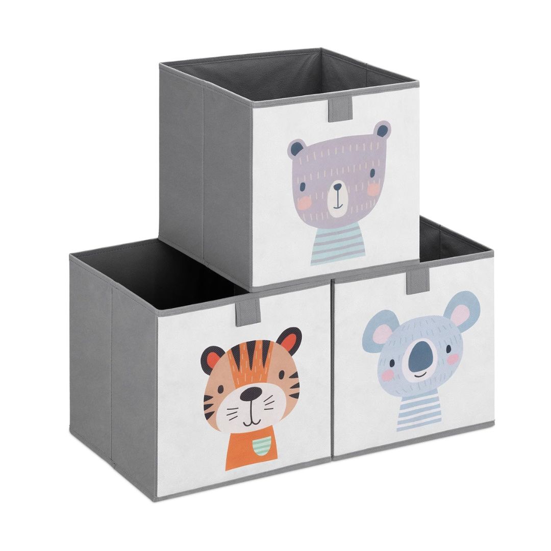- ENVÍO: Recibirás 3x cubo organizador de 28 x 28 x 28 cm en color beige con diseño de animal.
