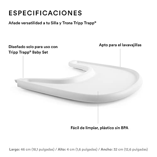 - FÁCIL DE LIMPIAR – Hecha con plástico sin BPA, la bandeja es fácil de limpiar para derrames rápidos. Sujétala o quítala según necesites. Nota: La bandeja está diseñada exclusivamente para el Tripp Trapp Baby Set V2 y posterior.
