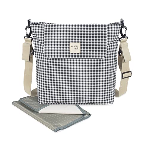 Bolso cambiador I Love Vichy negro para silla de paseo que incluye cambiador para bebe. Bolsa canastilla muy ligera, resistente y de gran capacidad para llevar todo lo necesario para el paseo del bebe. Tiene multiples bolsillos para poder tener todo ordenado y a mano. La bolsa tiene un sistema universal de fijación, con 2 asas cortas ajustables que facilita la colocación en cualquier modelo de silla de paseo. También incorpora una asa larga para poder colgarla en el hombro y asas cortas de mano. Gran calidad y mucho estilo. Fabricada en un material resistente y de fácil limpieza. Walking Mum protege a tu bebé utilizando los mejores tejidos, libres de colorantes azoicos y sustancias nocivas para la salud. Nuestra colección Walking Mum guarda toda la calidad de la marca Pasito a Pasito pero con un particular sello de estilo urbano y moderno que no pasa desapercibido, para vestir diferente los paseos con tu bebé. Las bolsas de maternidad de esta línea son más sport y prácticas, especialmente pensadas en mamás y papás modernos que aprecian los diseños más actuales y en tendencia sin dejar de lado la calidad y la funcionalidad de los accesorios que complementan y hacen más cómodos todos los paseos con sus bebés. Especificaciones: Materiales: 100% algodón plastificado. Medidas: 41X34X12 cm.