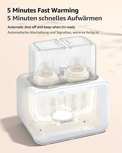 - 🍼-[Calentamiento y Esterilización Rápidos]: 80 ml de agua produce suficiente vapor para calentar bien la leche entre 3-7 minutos, beba en cualquier momento para evitar que el bebé llore. Mantenga la comida del bebé caliente en 6 horas. Calentar la comida del bebé con aislamiento de agua es más saludable para los bebés. Apagado automático cuando se completa el calentamiento o la esterilización. Más seguro y más conveniente