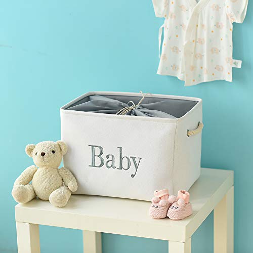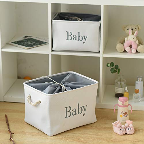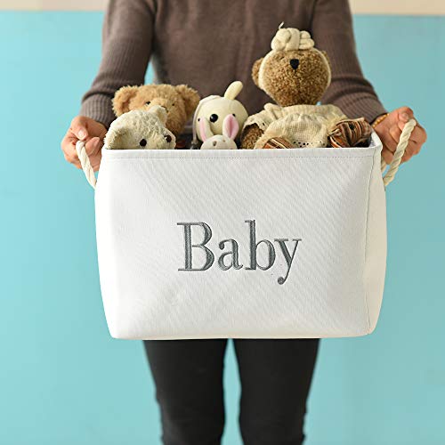 - 🧸 Bonito Bordado y Versátil – Esta cesta cuenta con un hermoso bordado en gris que dice «Baby», lo que le da un color neutro a la guardería y hace que la habitación de tu bebé se vea aún más elegante y con clase. Además, esta cesta también se puede usar en la sala de juegos de los niños, en la sala de estar o en el baño. Tamaño: 41 x 31 x 28 cm / 16 «x 12.2» x 11 «(L * W * H). Contenido del paquete: 1 x Cesta Grande de Bebé.
