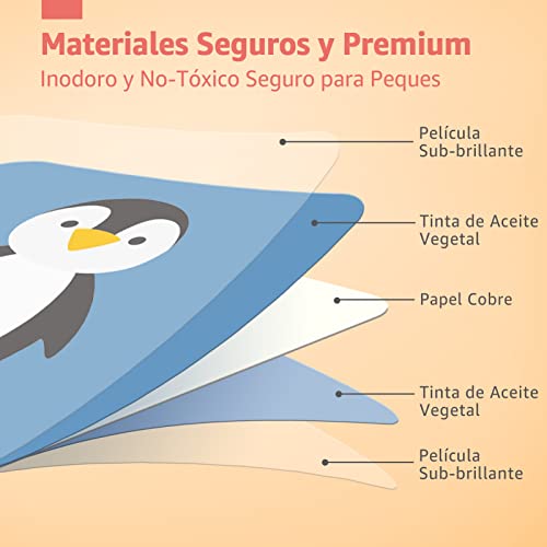 • 【Calidad Superior】Hecho de materiales inodoros y no tóxicos. Impreso en cartulina gruesa en gran formato (15x15cm) para mayor durabilidad. La capa exterior está cubierta con una película subbrillante – Impermeable y Anti-glare.