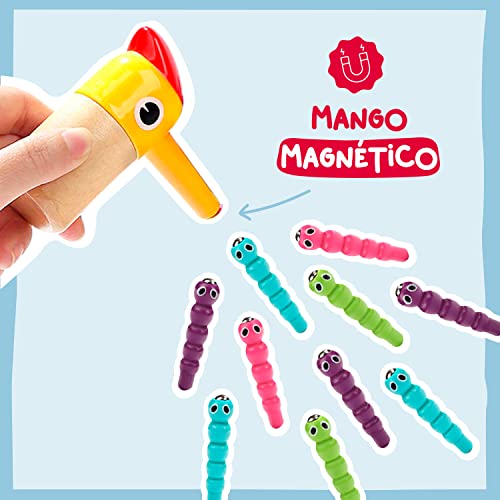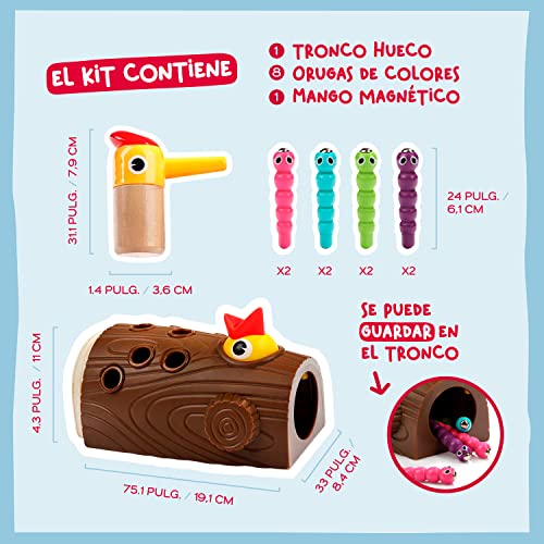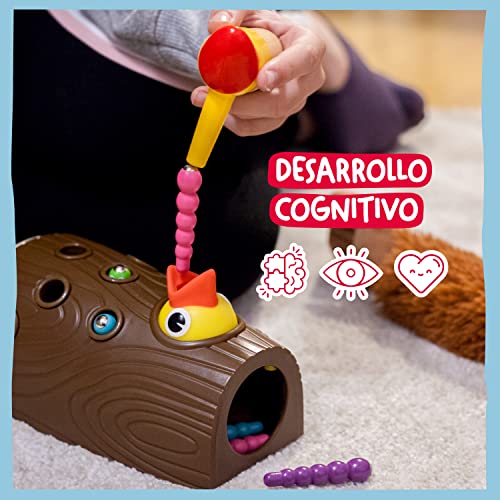 - Juego educativo para bebés y niños: Desarrollado en base a una extensa investigación en aspectos cognitivos, físicos y emocionales en los niños, nuestro juego de alimentar a los polluelos con coloridos insectos permite que tus hijos tengan la oportunidad de tomar el rol de ser madre o padre y alimentar a sus pequeños. Las adorables orugas que están escondidas dentro del tronco deben ser encontradas y atraídas magnéticamente para alimentar el polluelo.