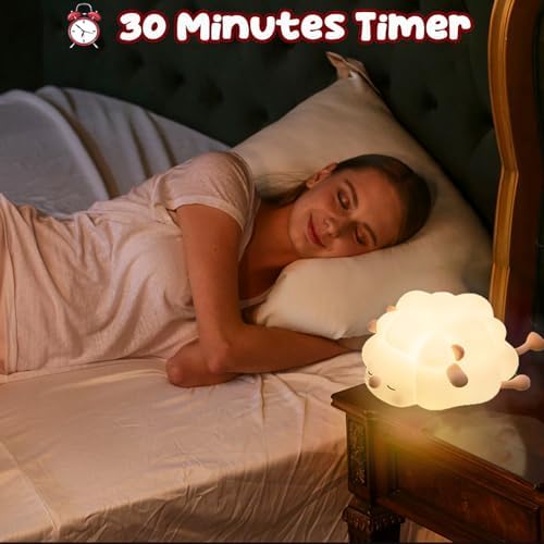 - 【Función de temporización】La lámpara para niños tiene modo de temporizador de 30 minutos, mueva el botón a la izquierda » 30′ «, después de ajustar, se apagará automáticamente después de 30 minutos. Una mezcla super linda de oveja para dormir y luz nocturna, con suave iluminación LED blanca cálida de 3000K. para ahuyentar la oscuridad y acompañar a los niños cuando se van a dormir. Es una mascota cálida, dormilona y mona.