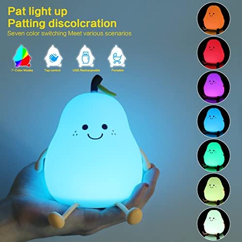 - 🍋【Material de alta calidad】: la luz nocturna infantil led en forma de pera está hecha de silicona muy suave, de tacto blando, segura y no tóxica, la luz nocturna es resistente a los golpes y al calor, ligera y fácil de transportar, lo que le permite estar en estrecho contacto con la piel del bebé, acompañando al niño a jugar.