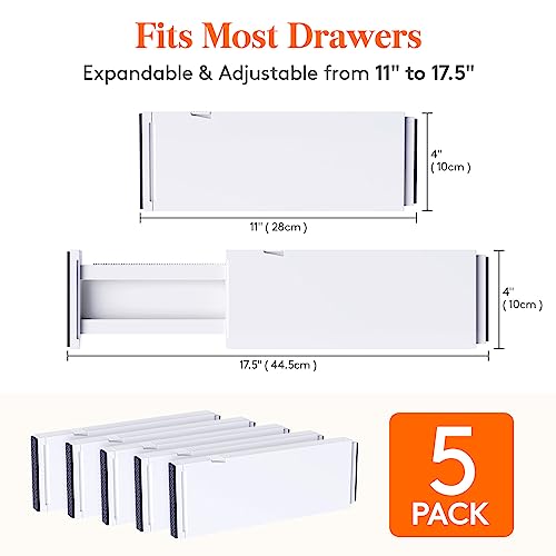 - Expandible y ajustable: Con un ancho de 2 cm, una altura de 10 cm y una longitud ajustable que va desde 28 hasta 44.5 cm, nuestros separadores de cajón se adaptan fácilmente a la mayoría de los cajones y gabinetes, proporcionando la solución ideal para mantener tus objetos organizados y tus cajones ordenados en todo momento.
