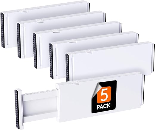 - Colocación flexible: Nuestros versátiles separadores de cajón para ropa están disponibles en conjuntos de 4, 5, 8 y 12 unidades, y se pueden colocar tanto vertical como horizontalmente para adaptarse a una variedad de necesidades de organización. Esta flexibilidad te permite seleccionar la cantidad que mejor se ajuste a tus necesidades.