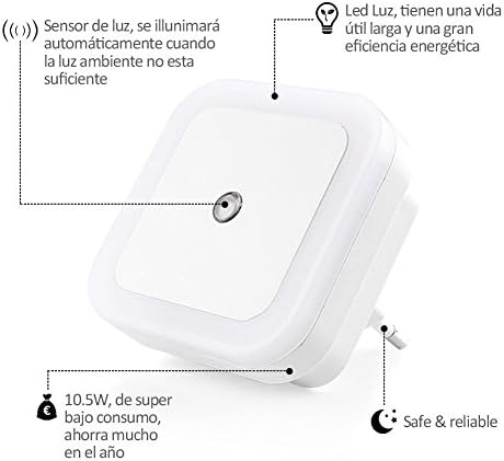 - LÁMPARA NOCTURNA ECONÓNICA – 4 luces led enchufablessolo consume 0.5W por cada uno, de super bajo en el cosumo de energía y ahorra mucho de electricidad. Si suponemos un coste de la electricidad a 0.12€/kW, y que la lámpara va a estar encendida 9h/día, el coste en energía es de aproximadamente 3€/año.
