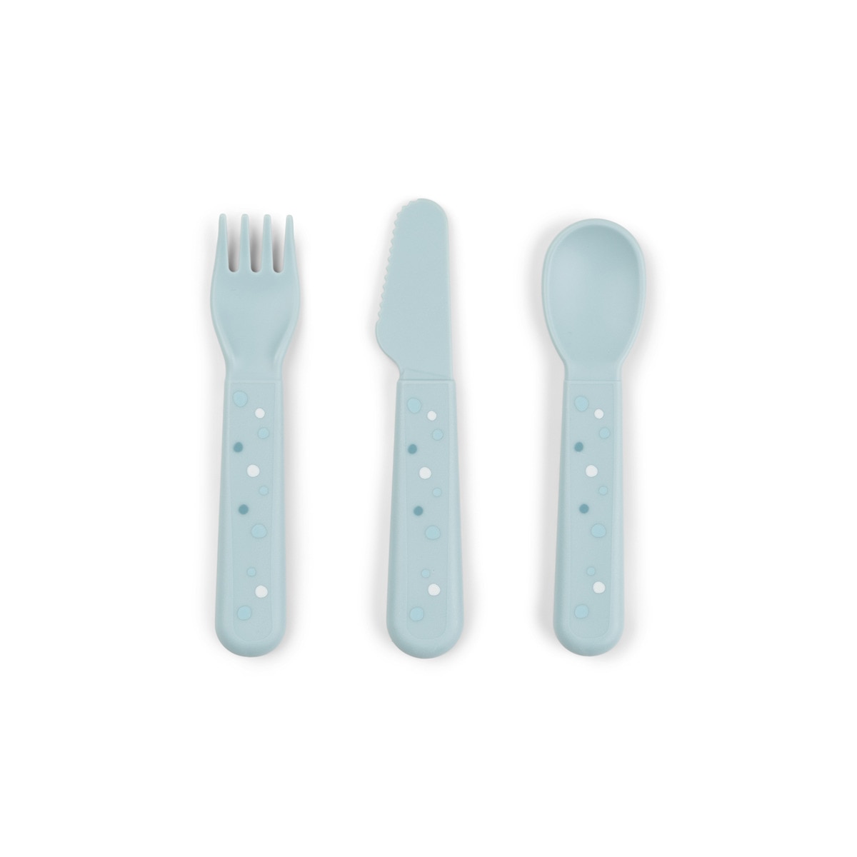 Set de cubiertos 3 piezas colección Foodie. El set de tres cubiertos Foodie tiene bordes suaves y redondeados que los hacen seguros para los más pequeños que empiezan a practicar comer solitos. Los cubiertos se adaptan perfectamente a las manos pequeñas y han sido probados minuciosamente por los niños. El bonito juego de cubiertos para bebés y niños consta de una cuchara, un tenedor y un cuchillo. Una vez que los cubiertos han cumplido su propósito en innumerables cenas familiares, se pueden clasificar como plástico y reciclar. Este set de cubiertos con divertidos puntitos alegrará cualquier comida. Su superficie mate sedosa hace juego con el resto de la colección Foodie. Cumple con EN 14372. Por favor, lea el manual de instrucciones en el interior antes de usar. Edad recomendada: a partir de 0 meses. Este producto está probado y cumple con la norma europea para cubertería EN 14372. También está probado y cumple con las normativas de la UE relativas al contacto con alimentos 10/2011 y 1935/2004.