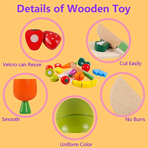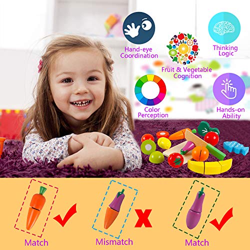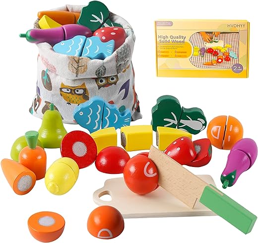 - Juguetes de cocina: Juguetes de madera para frutas y verduras de cocina para niños: con una bolsa reutilizable , que es fácil de almacenar y cultiva la capacidad de almacenamiento y clasificación del bebé desde la infancia. Los ricos juguetes de frutas y verduras incluyen tomate, naranja Navel, fresa, limón, berenjena, zanahoria, verduras, pera, pescado, plátano, tabla de cortar, cuchillo Kichen.