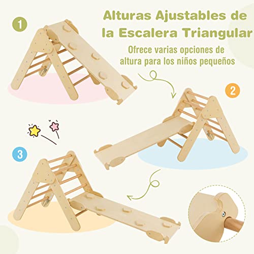 - 【Regalo Perfecto para Niños Pequeños】El set de juguetes de escalada de madera es un regalo perfecto para niños mayores de 1 año. Los niños pueden promover su equilibrio, aprendizaje, habilidades sociales y otras habilidades cuando juegan con el conjunto de escalada en triángulo de madera.