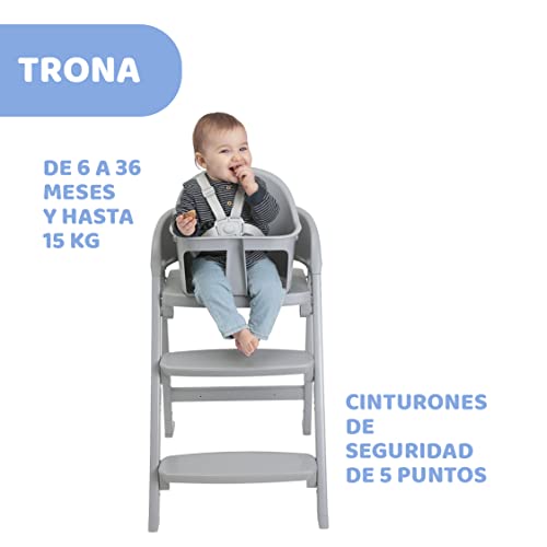 - Trona evolutiva con 3 configuraciones: Crescendo Lite sigue el crecimiento del bebé; se puede utilizar como trona de 6 a 36 meses; como silla para niños desde los 3 años hasta los 40 kg; y como taburete para adultos hasta 99 años y 110 kg